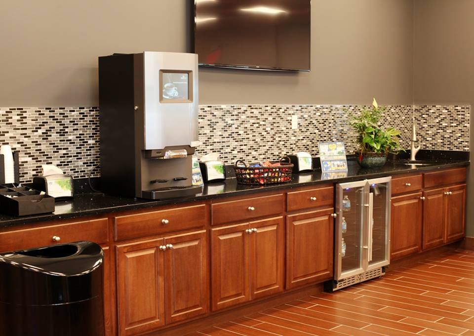 After all of the paperwork is done, you'll be shown to our comfortable waiting area full of amenities. If you want to relax, feel free to lounge in our cozy leather seats and watch what's on the widescreen TV.