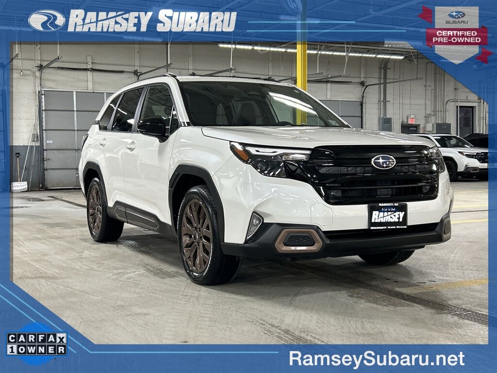 Certified. 2025 Subaru Forester Sport Crystal White Pearl 4D Sport Utility 2.5L 4-Cylinder DOHC 16V Lineartronic CVT AWD CARFAX One-Owner. For availability, call us at 1-800-683-8035. Clean CARFAX. harman/kardon Audio & Power Rear Gate & RAB, harman/kardon Speaker System, Power Rear Gate, Reverse Automatic Braking (RAB) System.