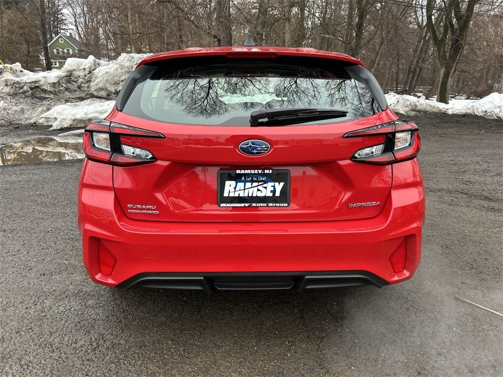 Certified. 2025 Subaru Impreza Sport Pure Red 4D Hatchback 2.0L DOHC CVT Lineartronic AWD CARFAX One-Owner. For availability, call us at 1-800-683-8035. Clean CARFAX. All Weather Package, Blind Spot Detection (BSD), BSD/RCTA & All Weather Pkg & Power Moonroof, Power Moonroof, Rear Cross-Traffic Alert (RCTA) System, Sun Visors w/Vanity Mirror & Lights.
