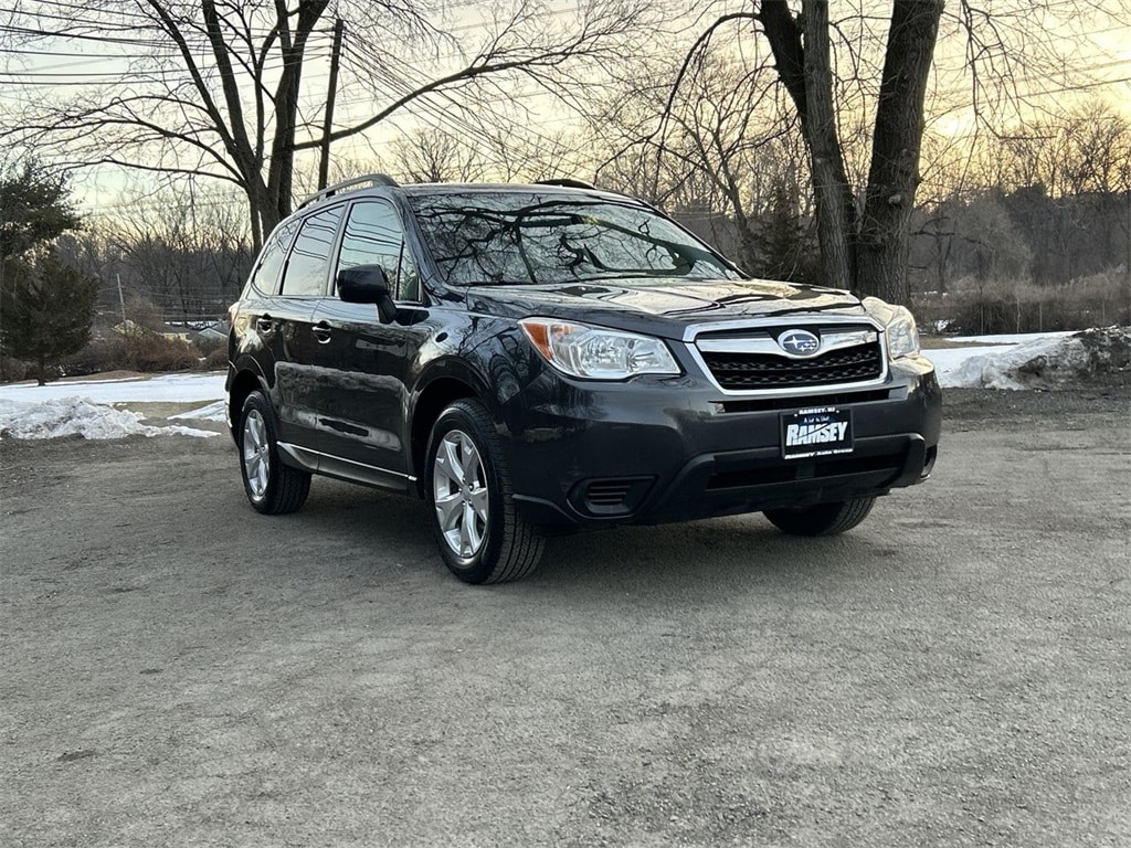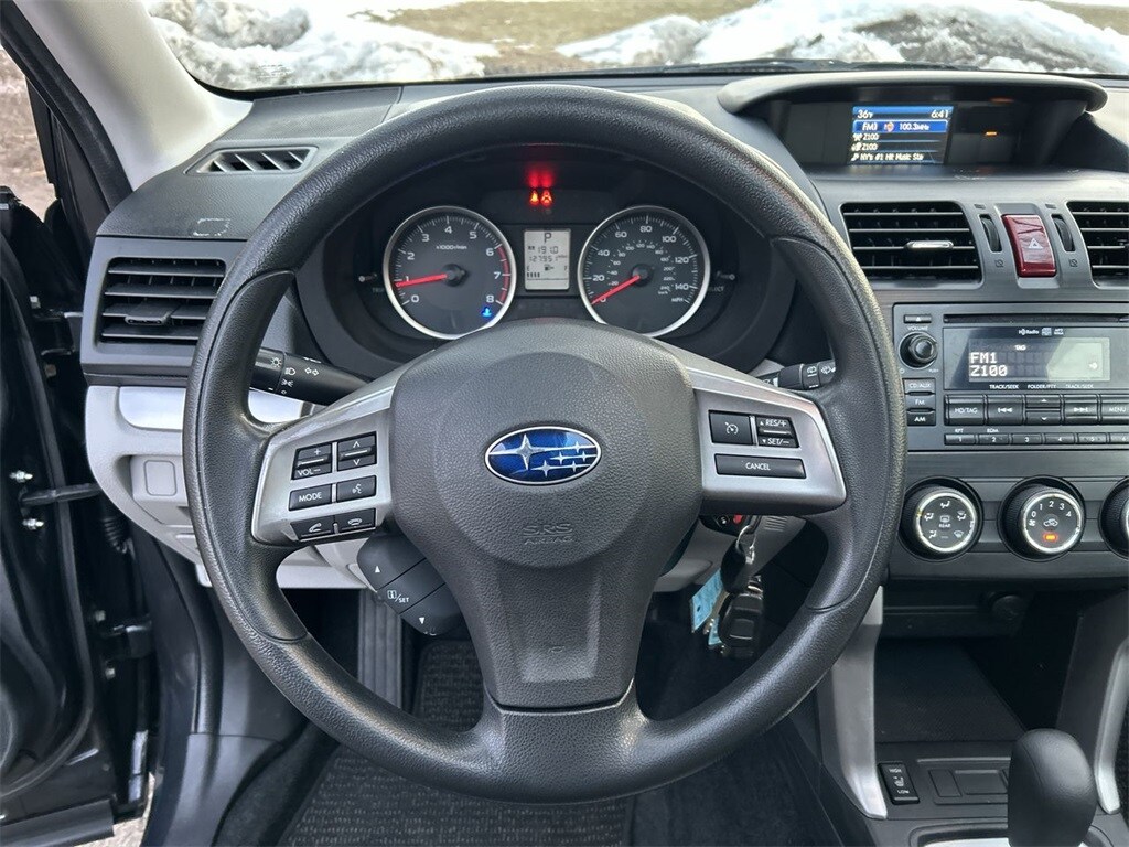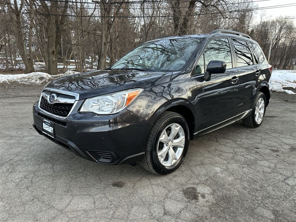 2014 Subaru Forester 2.5i Premium Dark Gray Metallic 4D Sport Utility 2.5L 4-Cylinder DOHC 16V VVT Lineartronic CVT AWD For availability, call us at 1-800-683-8035. Clean CARFAX. All-Weather Package, Heated Exterior Mirrors, Heated Front Seats, Windshield Wiper De-Icer.
