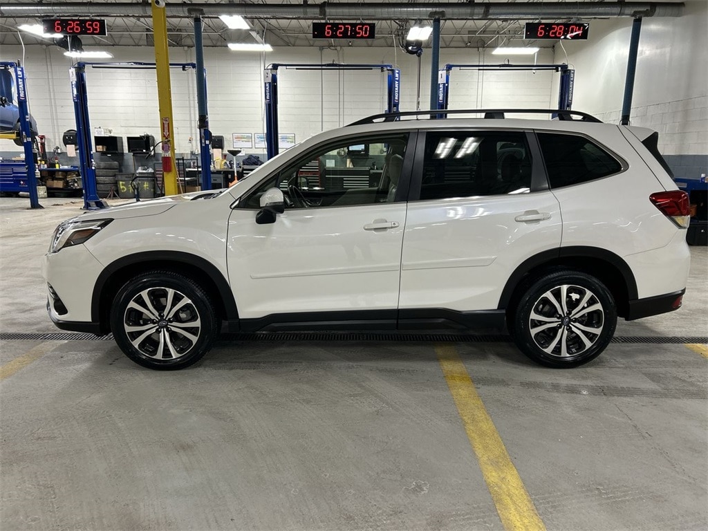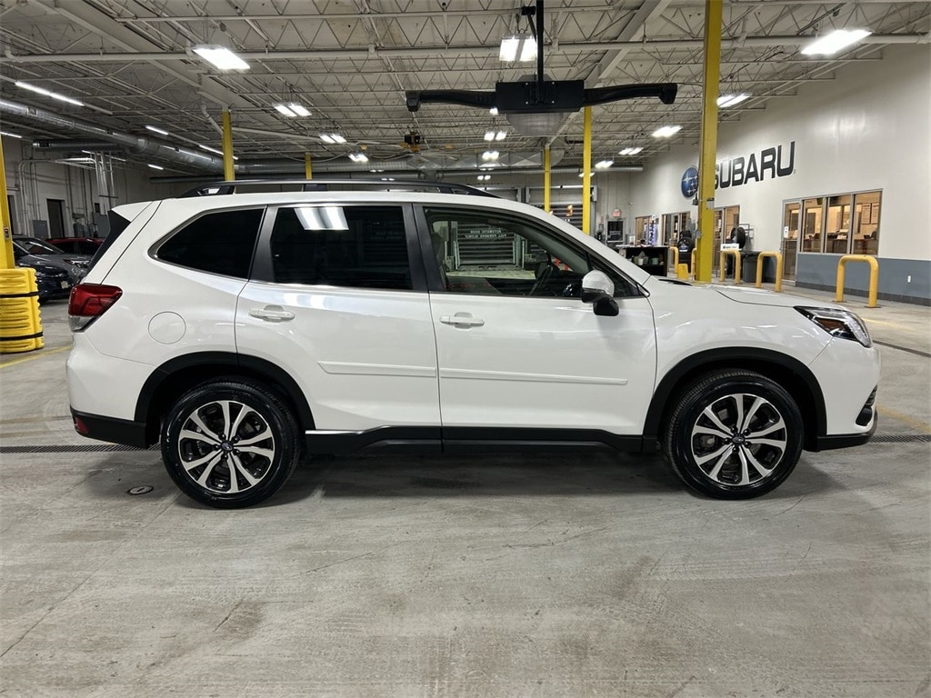 Certified. 2023 Subaru Forester Limited Crystal White Pearl 4D Sport Utility 2.5L 4-Cylinder DOHC 16V Lineartronic CVT AWD CARFAX One-Owner. For availability, call us at 1-800-683-8035. Clean CARFAX. Heated Steering Wheel, Nav & harman/kardon & RAB & Heated Steering Wheel, Navigation System, Radio: Subaru Starlink 8.0" Multimedia Nav System, Reverse Automatic Braking System (RAB).